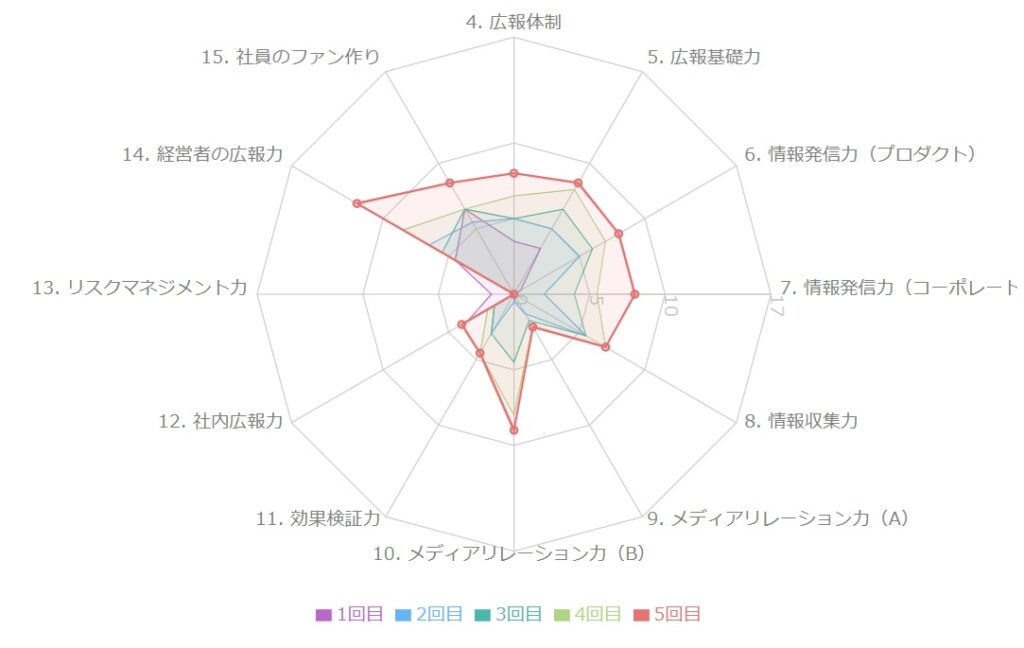 ネタもとでは、定期的に独自の「PR活動診断」を実施し、お客様の「自走化状況」を可視化・数値化することで、成果が見えづらい広報活動の「効果検証」を可能にし、自走化実現までの道のりをしっかりとサポートしています。