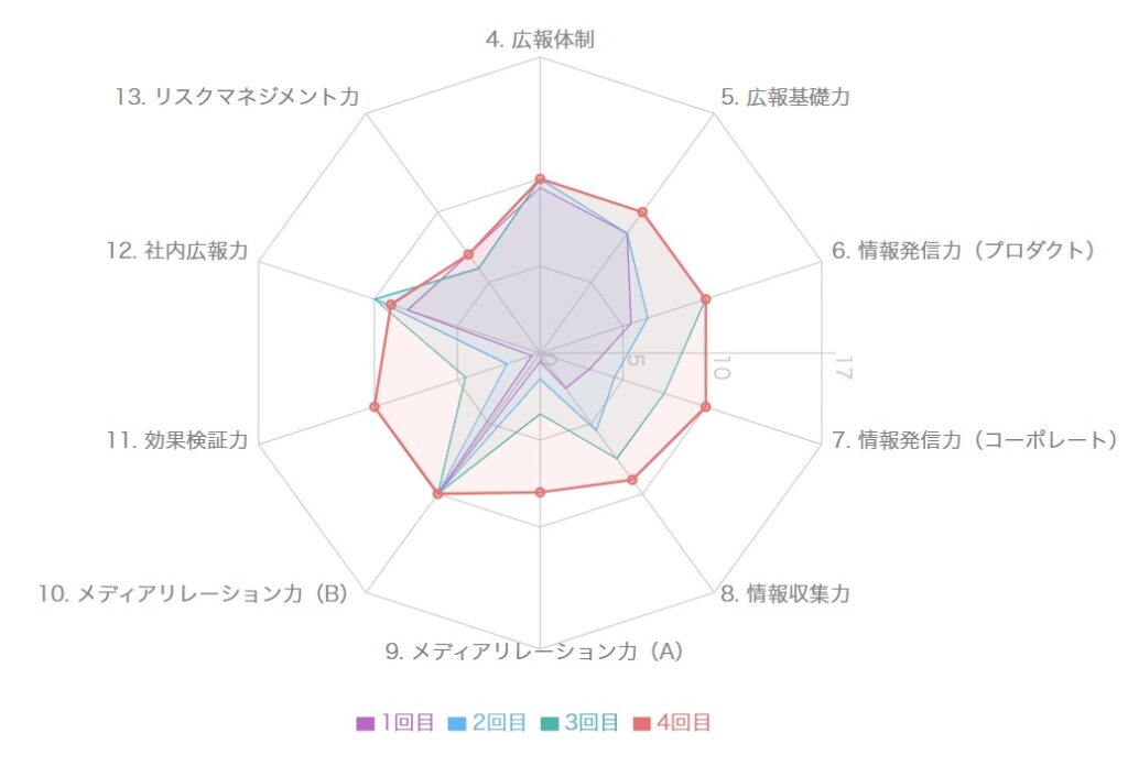 ネタもとでは、定期的に独自の「PR活動診断」を実施し、お客様の「自走化状況」を可視化・数値化することで、成果が見えづらい広報活動の「効果検証」を可能にし、自走化実現までの道のりをしっかりとサポートしています。