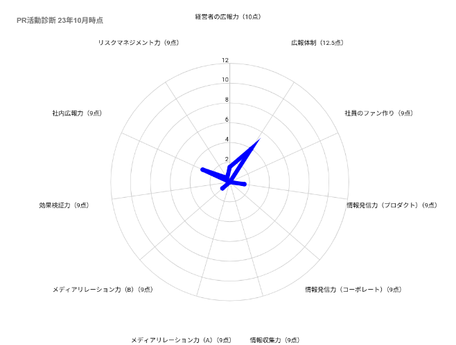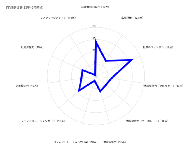 実際に、ネタもとの『PR活動診断』においても、当初11.5点だったところから、49.5点にアップし、学んだものが広報活動に活かされていると思います。
