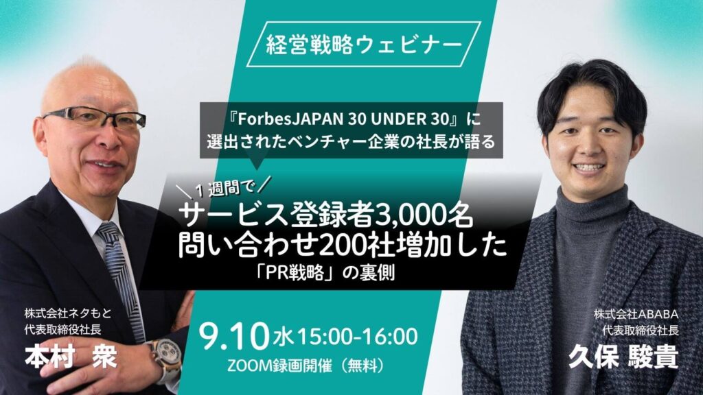 2020年に創業したベンチャー企業の社長が、1週間でサービス登録者3,000名、問い合わせ200社増加した「PR戦略」成功秘話を初公開!広報活動をどのように事業成長に結びつけたのか、その裏側を初めてお話いただきます